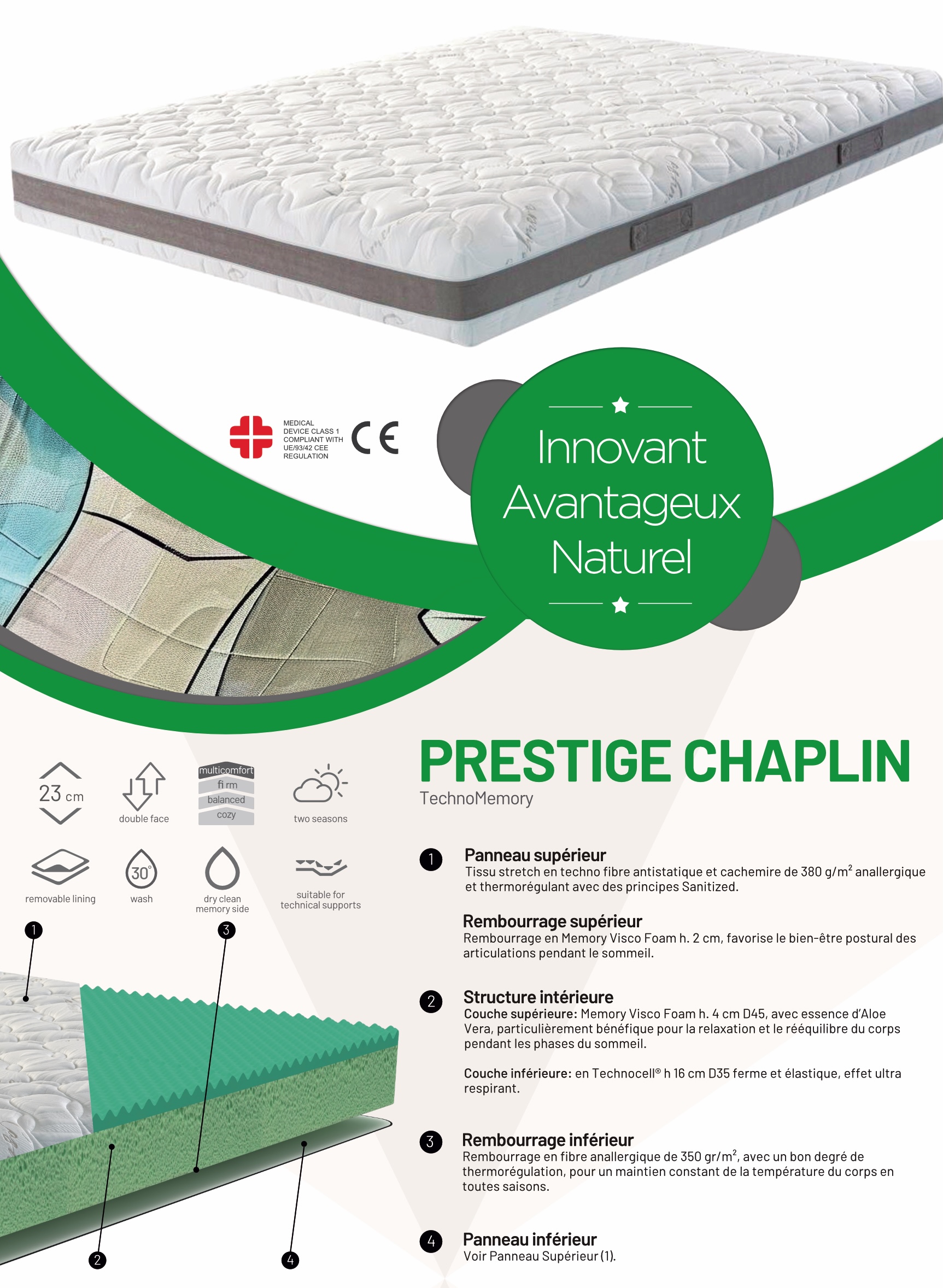 - Deux durées face1 moelleux/face 2 ferme